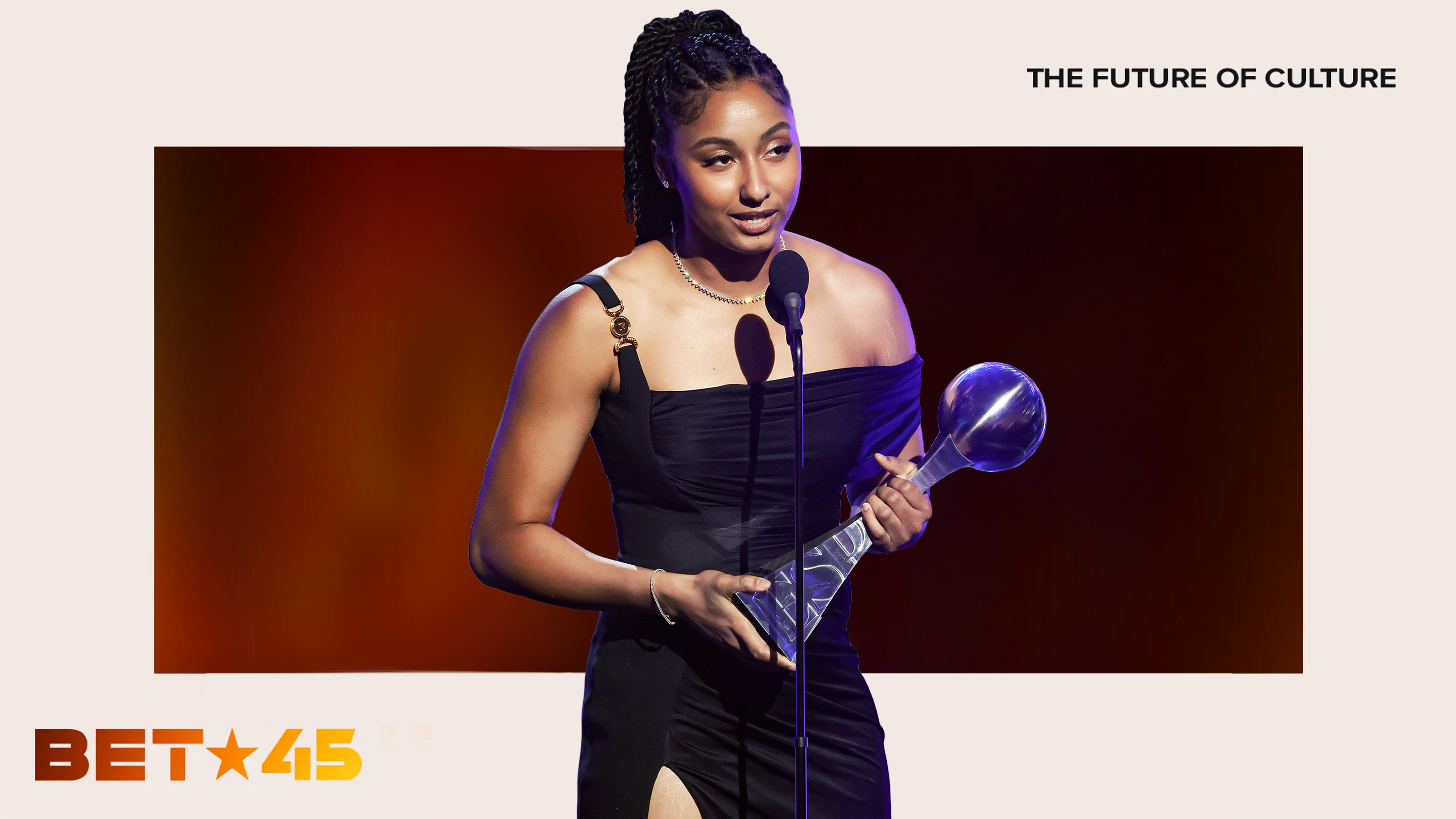 For BET’s 45th anniversary, we’re honoring our legacy of discovering and uplifting talent with “The Future of Black Culture” series. From Kendrick Lamar’s first televised performance to spotlighting legends like Beyoncé in her early career, BET has always been a platform for rising stars. This year-long series will kick off with five profiles, followed by a new feature each month, showcasing the next generation of trailblazers across entertainment, music, sports, art, tech, and activism.