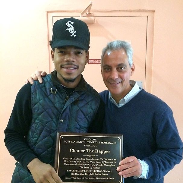 Chicago's mayor, Rahm Emanuel, presented the 21-year-old Acid Rap emcee with the honor of the 2014 Youth of the Year this weekend. "For your outstanding contribution to the youth of the state of Illinois," the inscription on the plaque reads. "You have given of yourself to the upward mobility of young people..."