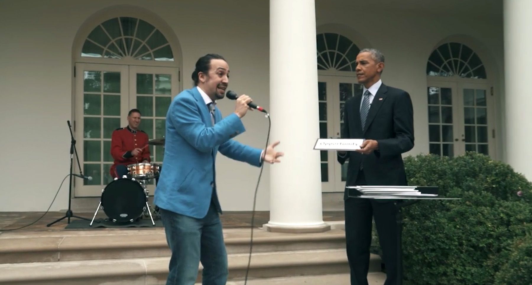 Now, the outgoing president is becoming part of the music as he recently joined Hamilton’s Lin-Manuel Miranda in the Rose Garden for a freestyle. During the nearly 2-minute video posted to Twitter by the White House’s official account, Miranda covers everything from The Constitution to NASA over a drummer’s beat. He finished the freestyle with approval from the President.