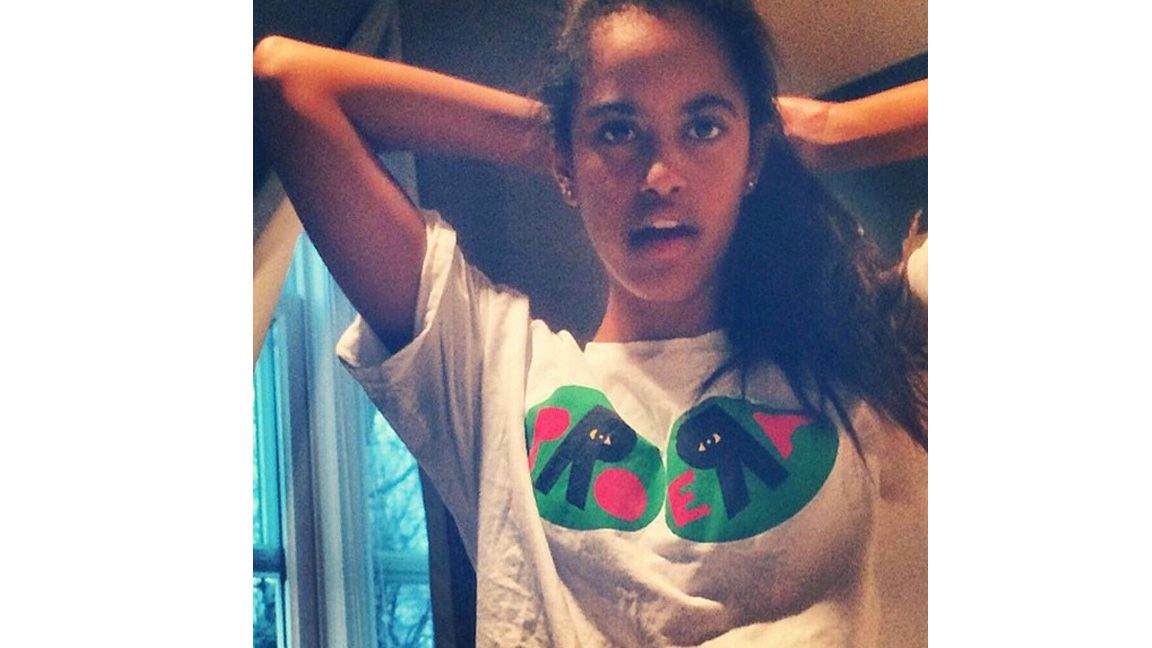 Pro Era posted her image to Instagram earlier today. In the photo, Malia wears her hair in a loose ponytail with her hands behind her head showing off the shirt. The photo looks like it could have been snapped from the teen's computer, although it is unclear when it was taken, or exactly who put it out.