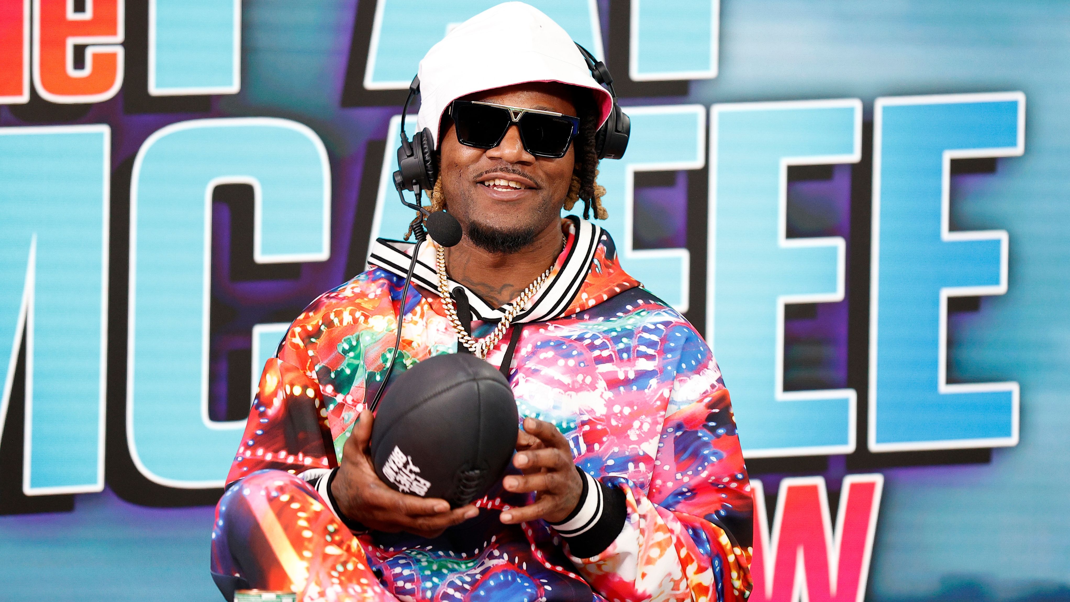 "I think my upbringing, seeing my grandma being a bootlegger—I always had that go-get-it mentality," Jones explained. "And that helped me on the field. Like, the way I grew up is the way I played. You got to work to play 14 years. So I took basically that mentality of me growing up and applied it to the podcast world. Same way—I'm DMing people, I gotta go find what I wanna find, I gotta make sure I'm pulling clips. Everything's a hustle. I soaked up a lot of game from Pat McAfee, and I snatched a little something from everybody to create my own. The hustle is relentless."