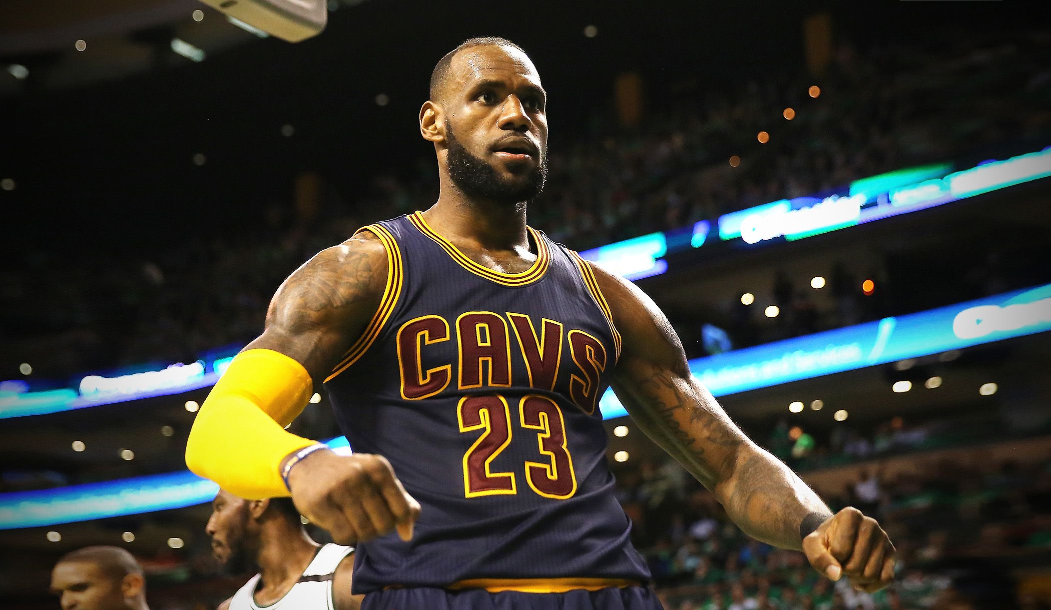 After dunking over Warriors center JaVale McGee during the first quarter last night, James proceeded to flash a mean mug death stare.