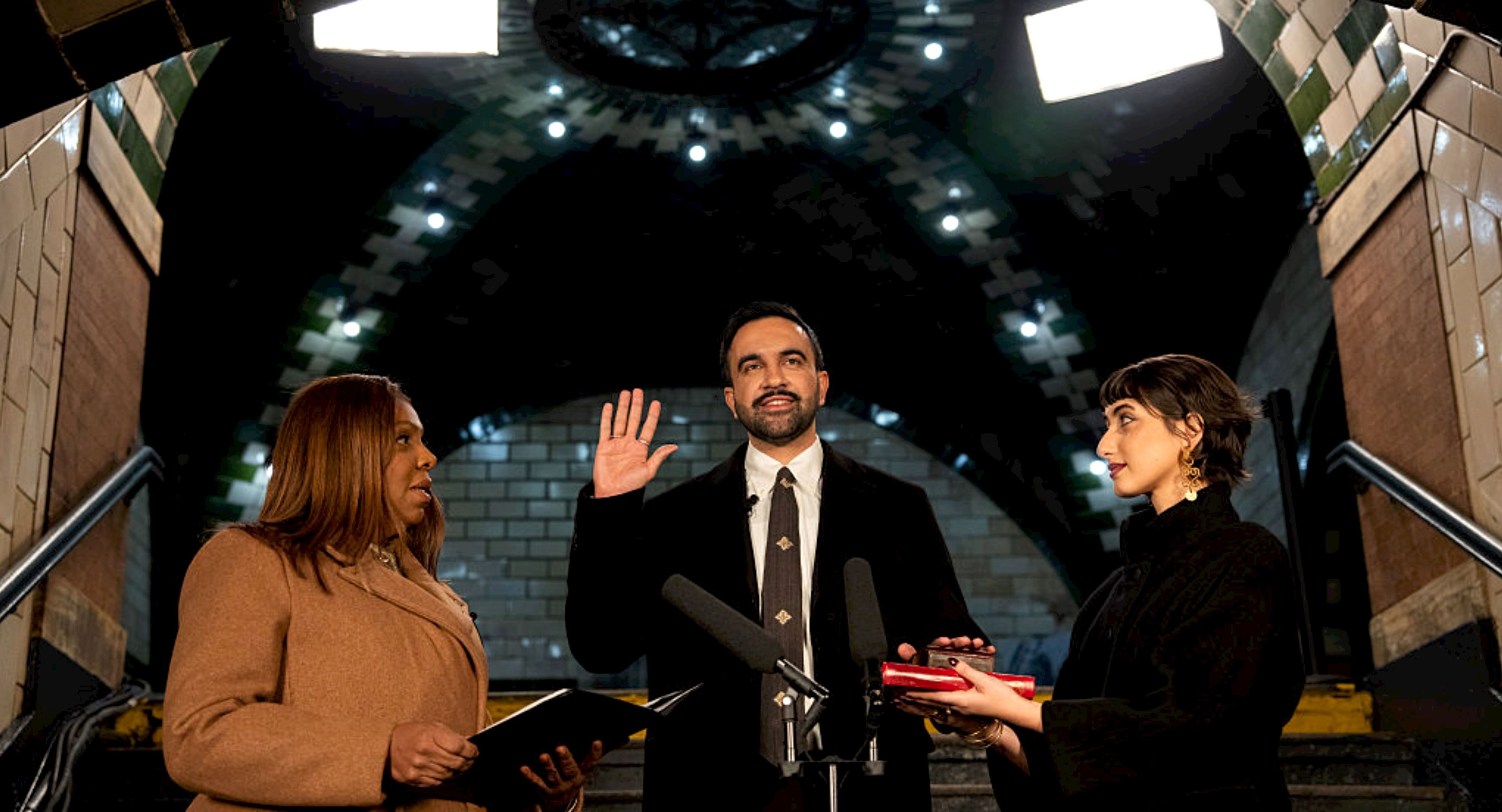 The inauguration was stacked with notable figures. Congresswoman Alexandria Ocasio-Cortez delivered the opening remarks, while New York State Attorney General Letitia James presided over the private midnight swearing-in. Senator Bernie Sanders, who administered Mamdani’s public oath of office earlier in the day, was referenced during the speech and sat among the attendees. Governor Kathy Hochul, outgoing Mayor Eric Adams, Public Advocate Jumaane Williams, and Comptroller-elect Mark Levine were also present.