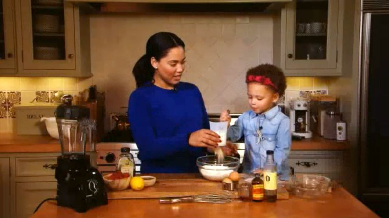There, the cute moments kept coming, as Riley did everything from cracking an egg — without getting shells in it — to pouring almond extract into a bowl of batter, mixing it with a whisk and hitting the blender's buttons not once, but twice. Too cute.