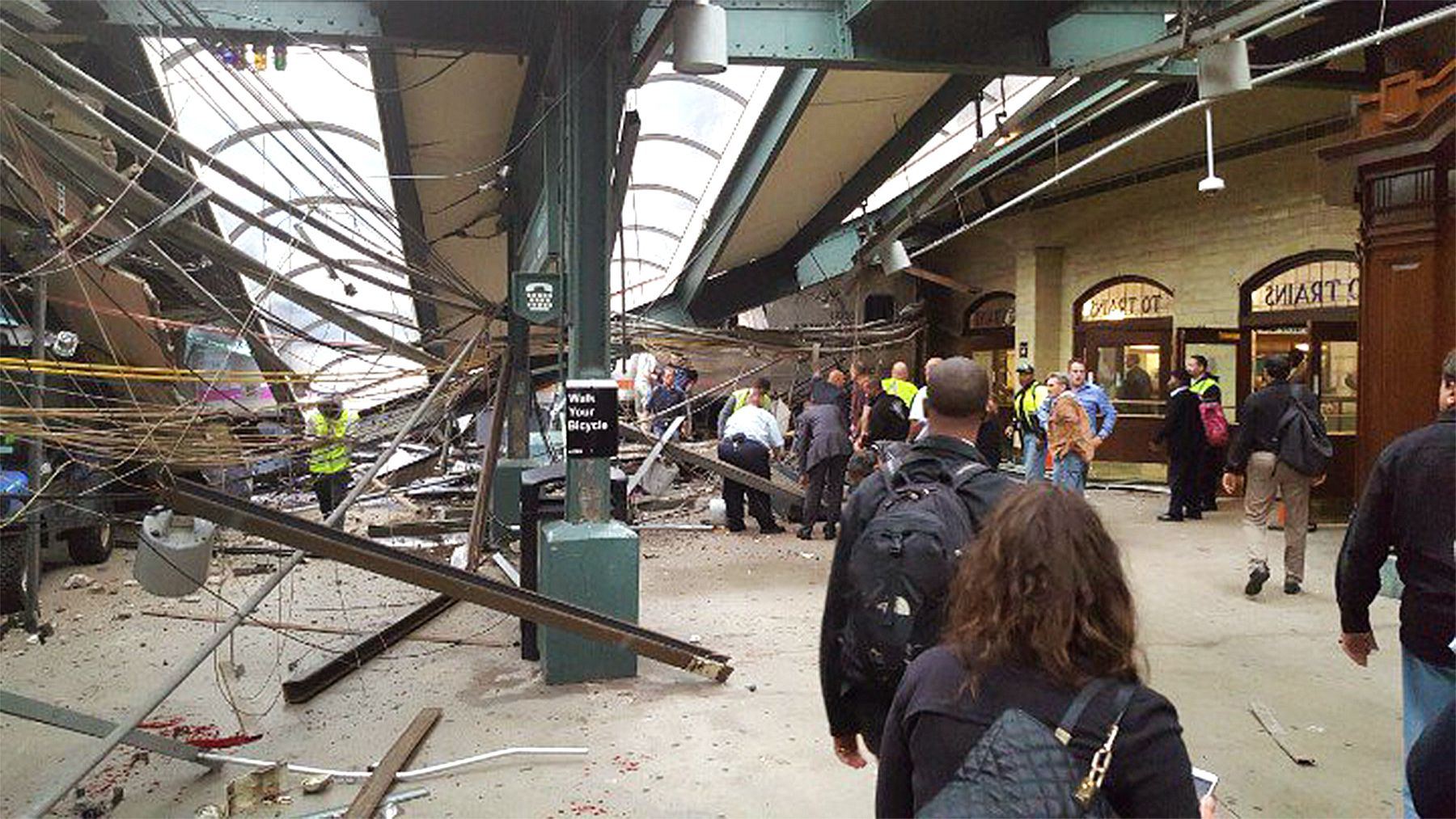 Surviving passengers and witnesses posted photos of the crash to social media. Based on the evidence, the train appears severely damaged, as do the structures and support beams within the station.
