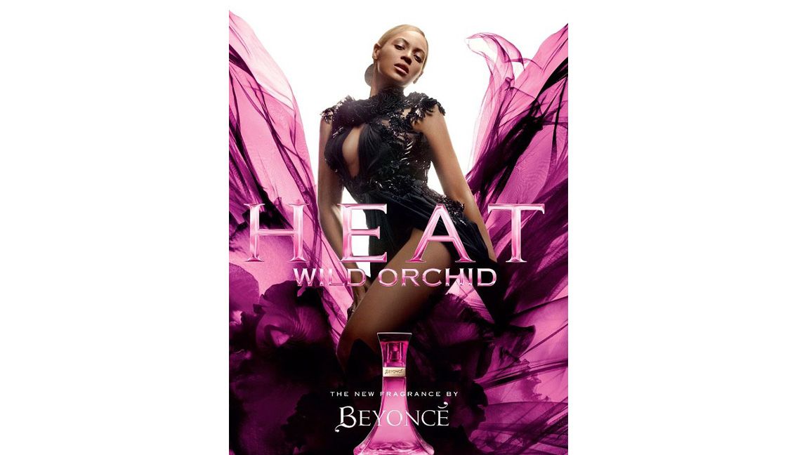Heat was first released in 2010 and it was followed by Heat Rush, Midnight Heat and a limited edition for her Mrs. Carter Show tour. Wild Orchid is a more mature scent, and the ad features a classier Bey dressed in black with a chignon and fuchsia chiffon swirling around her.