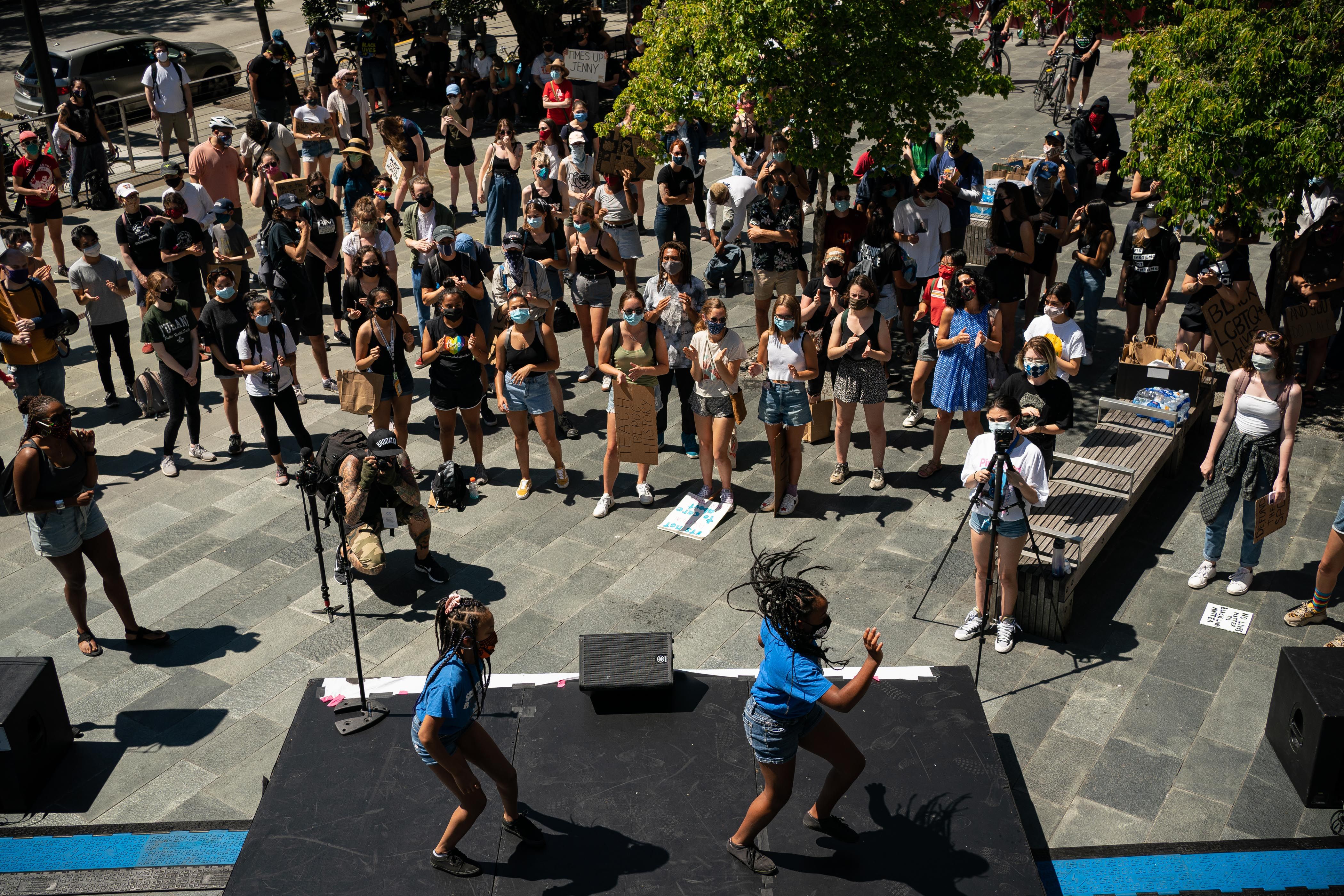 In workplaces where a stoppage was not possible for a full day, participants picketed during a lunch break or observed moments of silence while kneeling to honor police brutality.