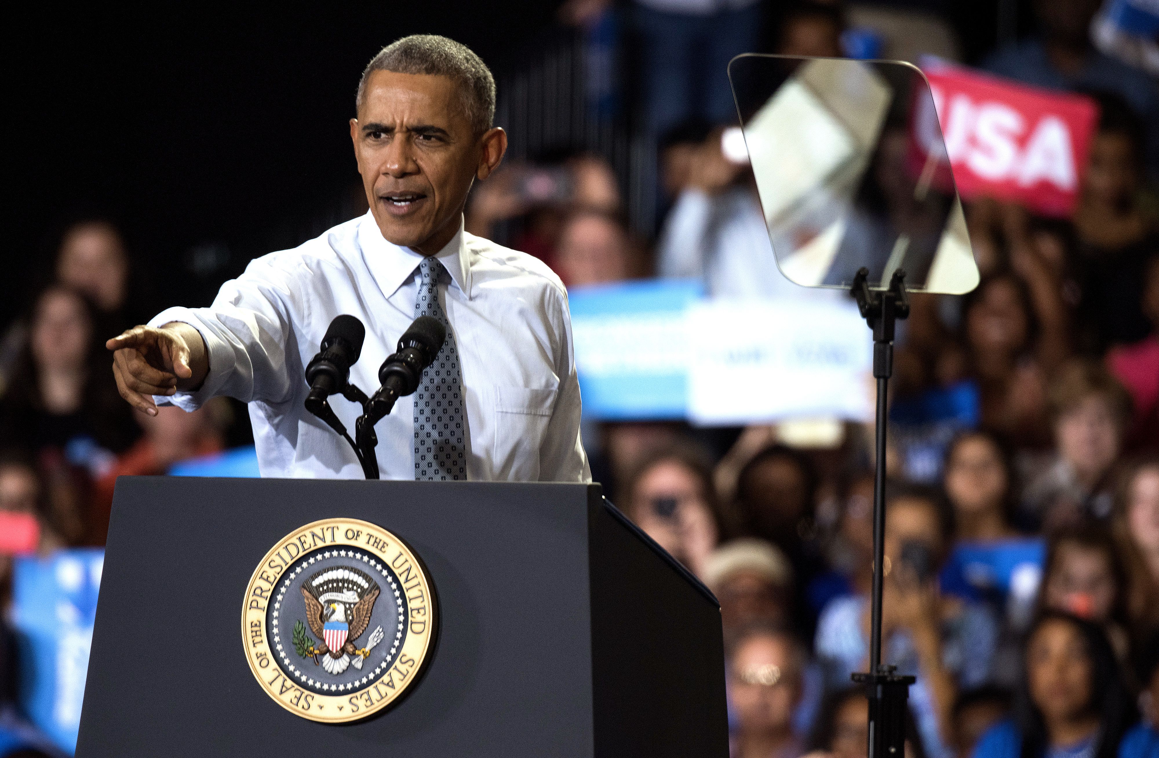 While campaigning for Hillary Clinton in Florida, President Obama dragged Donald Trump through the mud.