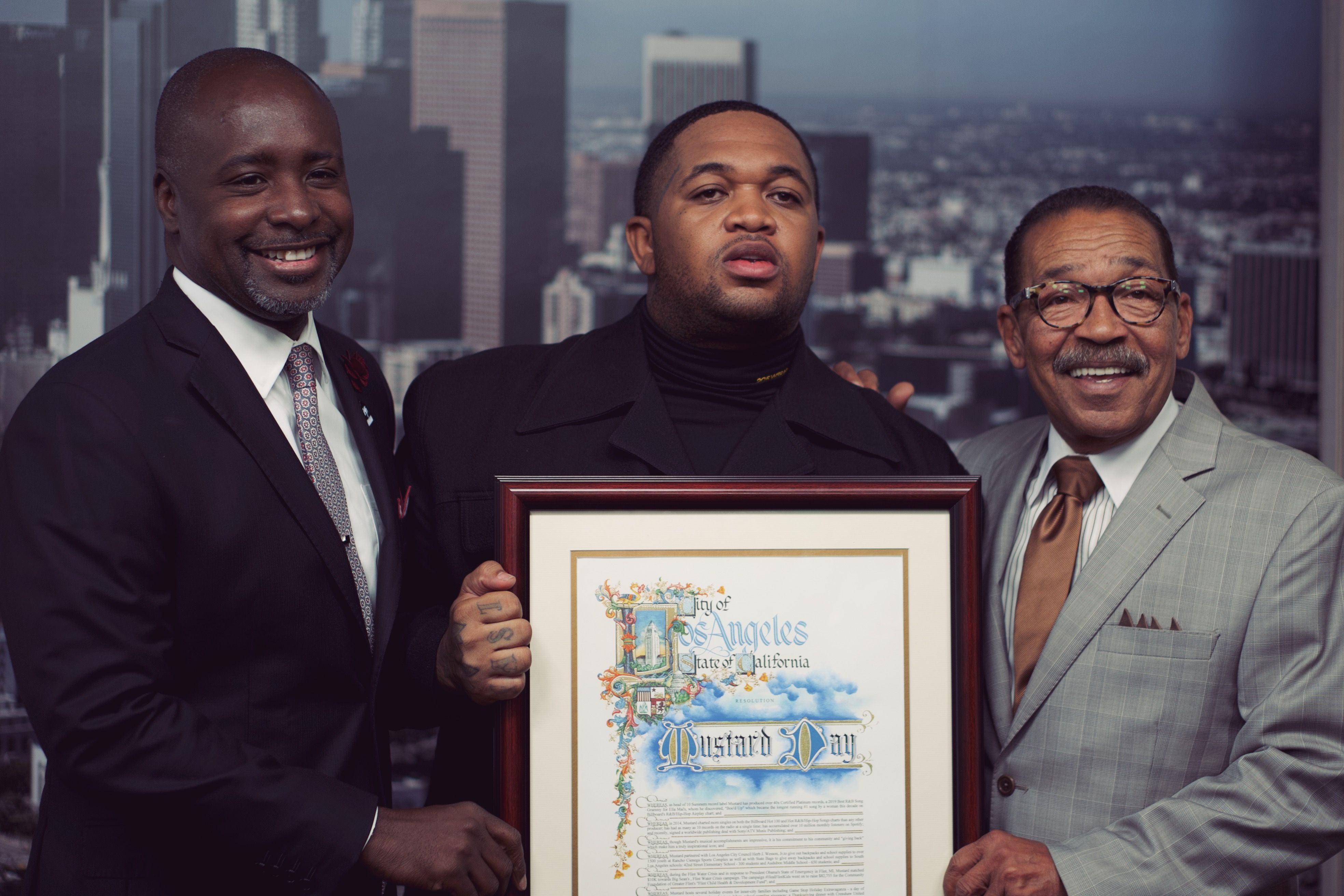 “I never would have imagined having a day in the city I was born and raised in,” Mustard candidly shared when it was his turn at the podium. “I am just super grateful and happy that I could even be named, or have a day in this city, because everything I do is for the city.”