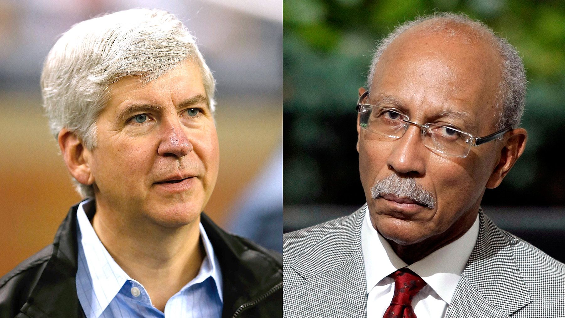 Gov. Rick Snyder and Mayor David Bing. (Photos from left: Leon Halip/Getty Images, Bill Pugliano/Getty Images)
