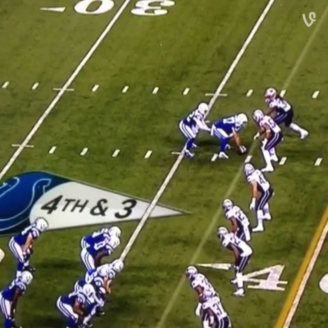 Instead of getting into a normal formation, the Colts had punter Pat McAfee line up out wide right, with only Griff Whalen at center and safety Colt Anderson lined up behind him to take the snap.