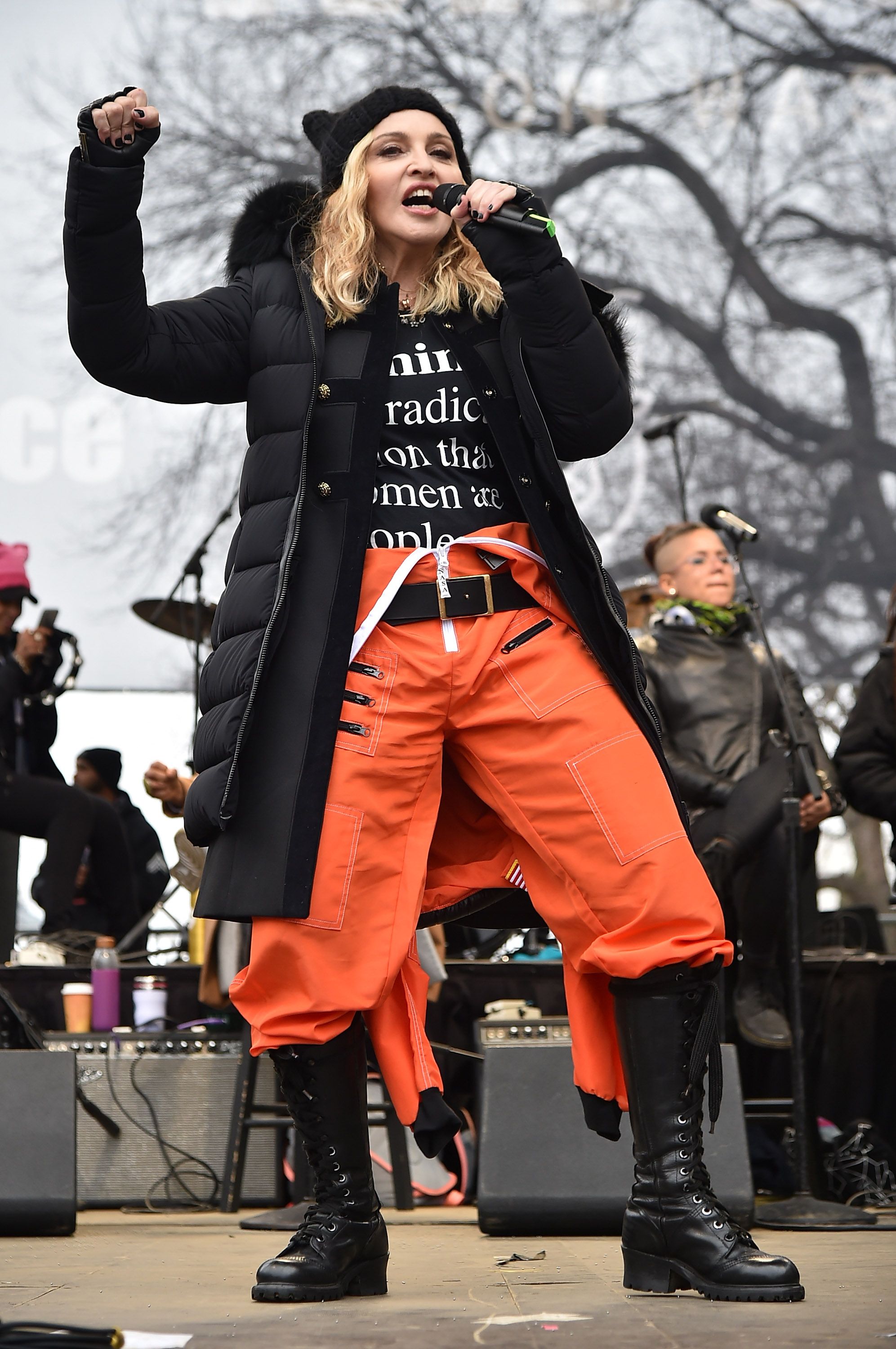 "Welcome to the revolution of love, to the rebellion, to our refusal as women to accept this new age of tyranny, where not just women are in danger but all marginalized people, where being uniquely different right now might truly be considered a crime," Madonna stated, during her speech. "It took this horrific moment of darkness to wake us the f**k up."