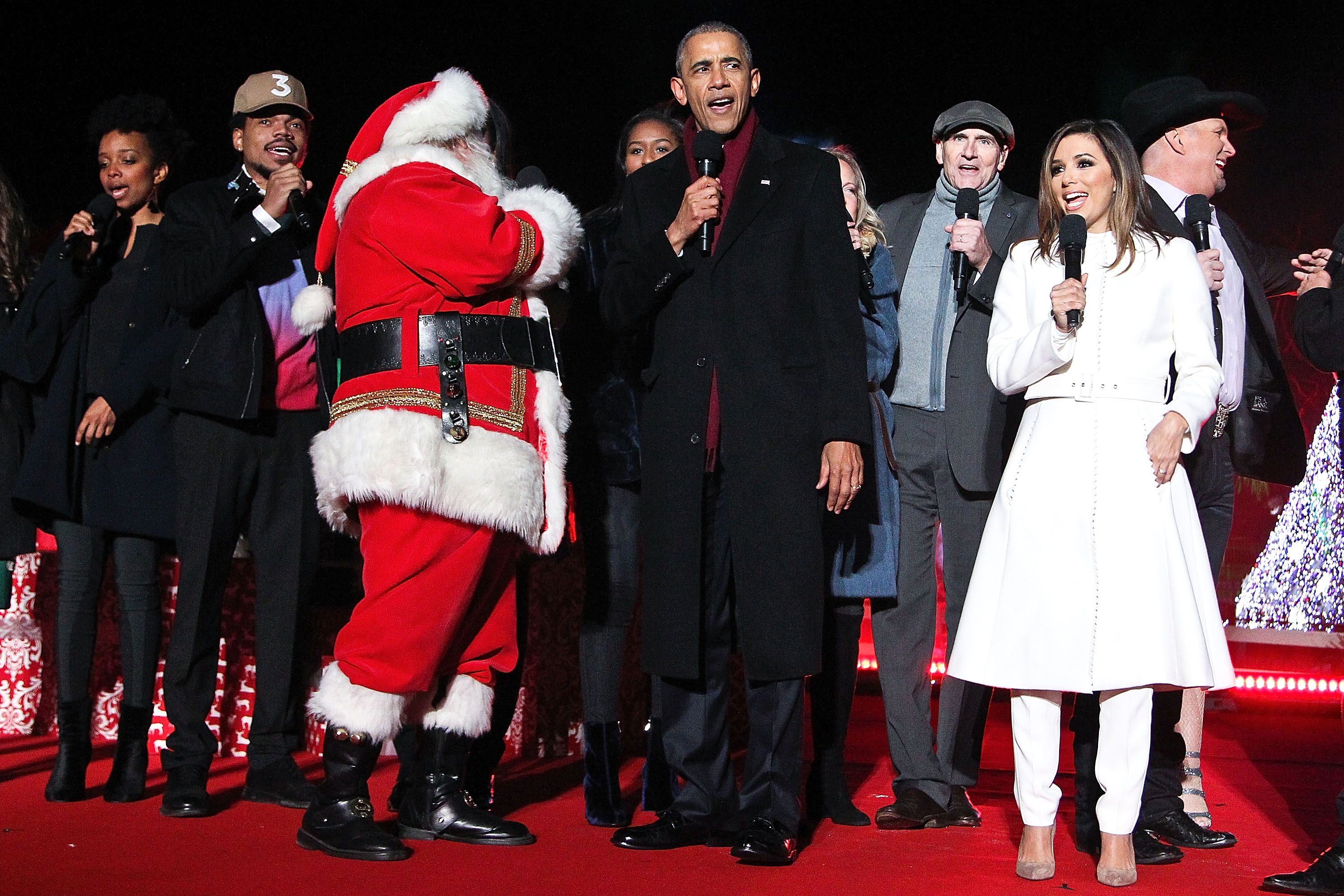 The first family, and the crew of attending celebrities, led the crowd in singing carols