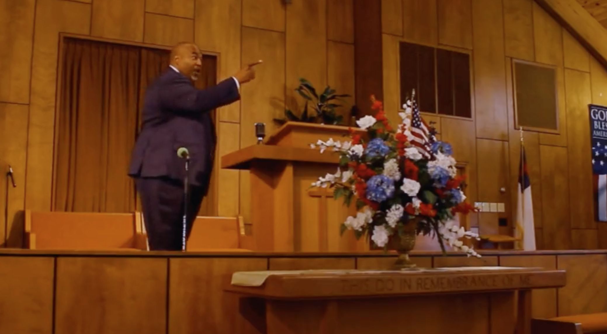 The video, which was first shared by progressive advocacy group Right Wing Watch, shows the Republican vice state executive speaking at the Asbury Baptist Church in Seagrove during a June visit.