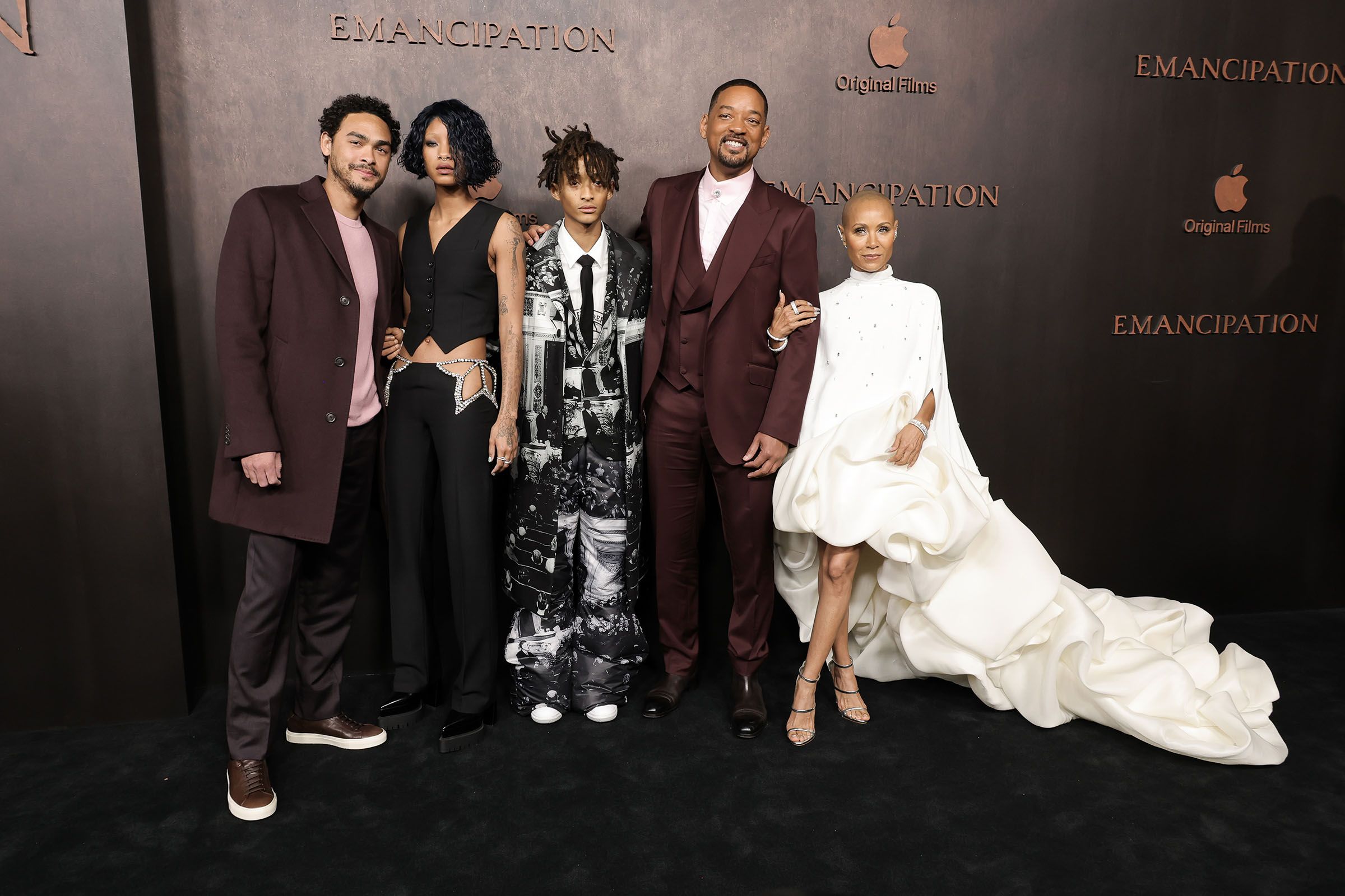 Will Smith made his first major red carpet appearance for his Apple Original Films project Emancipation on Wednesday (Nov. 30). The actor was joined by his wife, Jada Pinkett Smith, and children Trey, Jaden, and Willow.