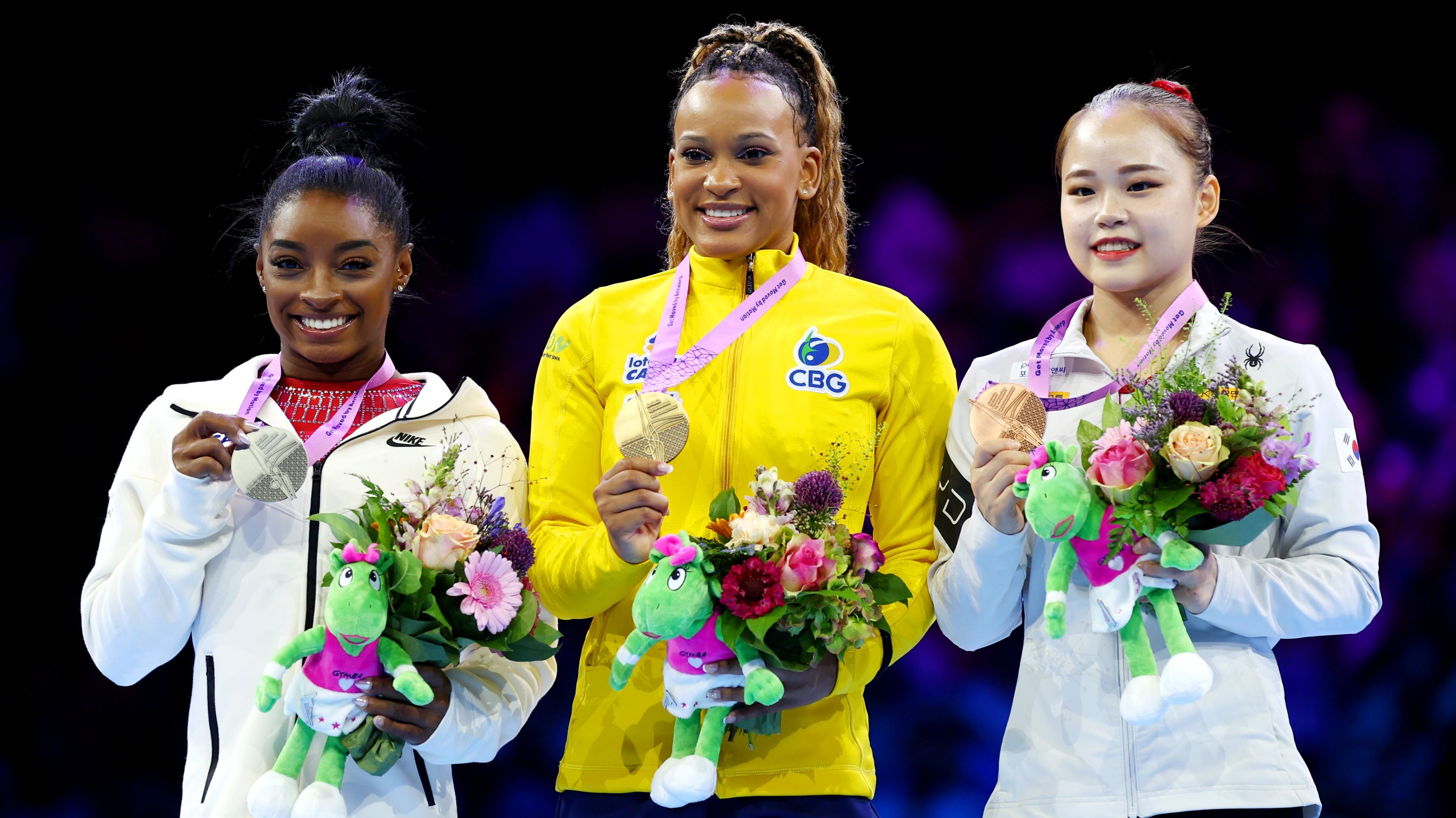 Friday’s win marked the sixth time that Biles, 26, won the individual all-around title, continuing a dominant run in her return to competition following a two-year break. She scored 58.399 points for the gold, besting defending champion Rebeca Andrade of Brazil, who took home the silver. Biles’ U.S. teammate Shilese Jones took home the bronze.