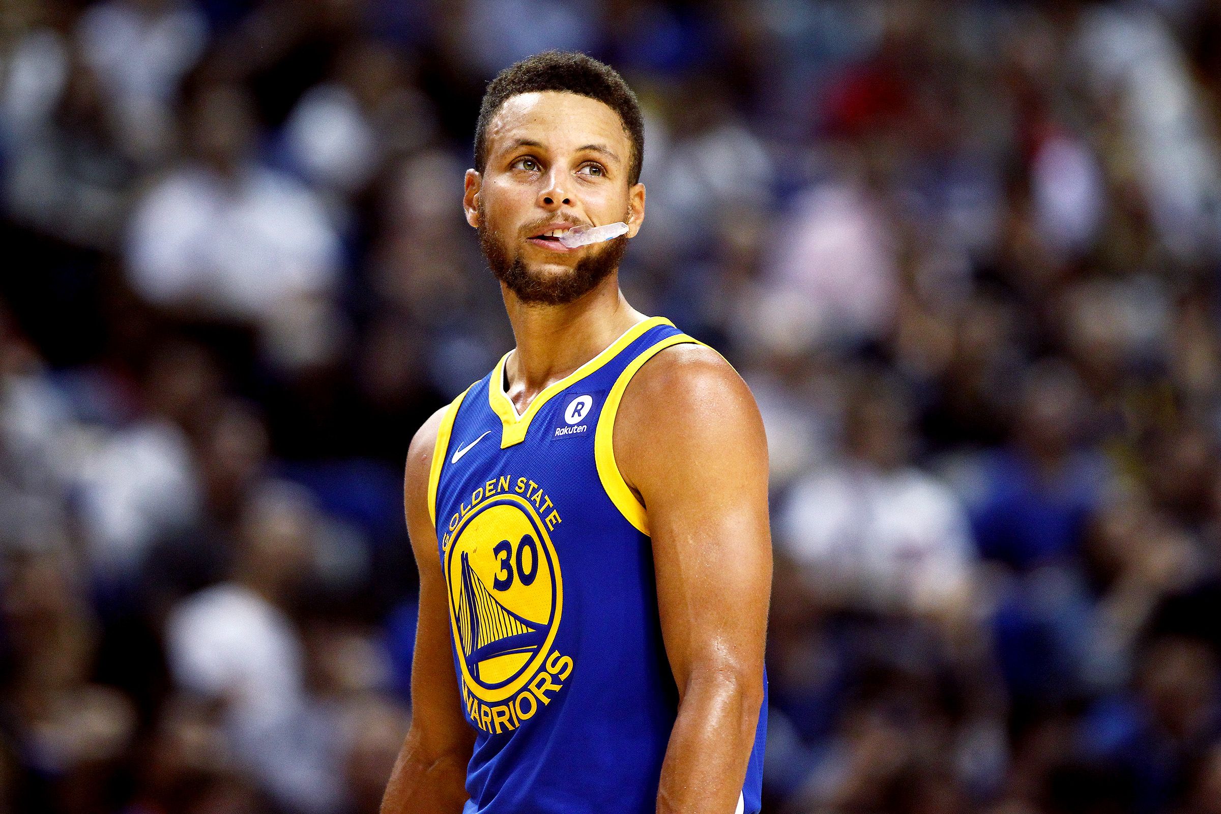 Curry's Warriors coach Steve Kerr was relatively unbothered about the incident, though, joking that the two-time champion point guard "should be suspended eight, maybe 10 games" for tossing his mouthpiece.
