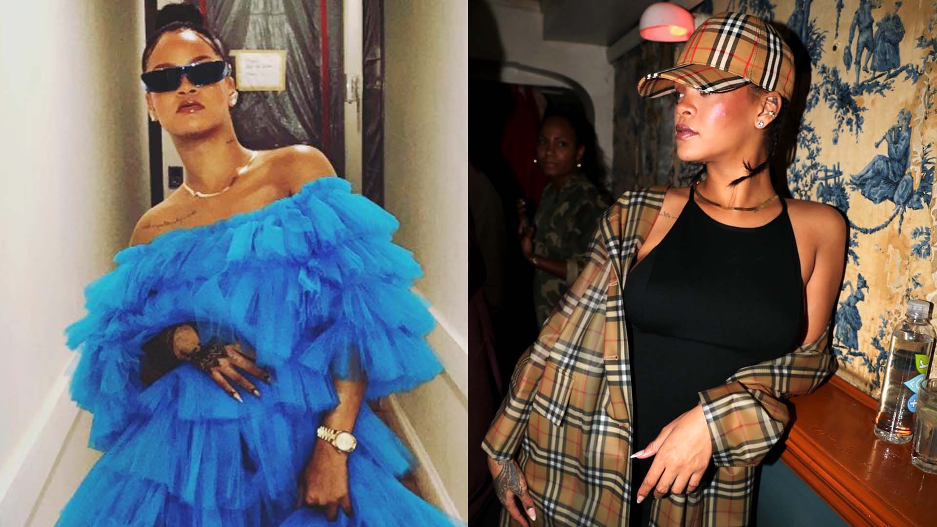 No, not with the sudden announcement of new celeb twins or anything of the like. Rihanna just happened to wear two instantly iconic outfits within a matter of hours. Look what God did!