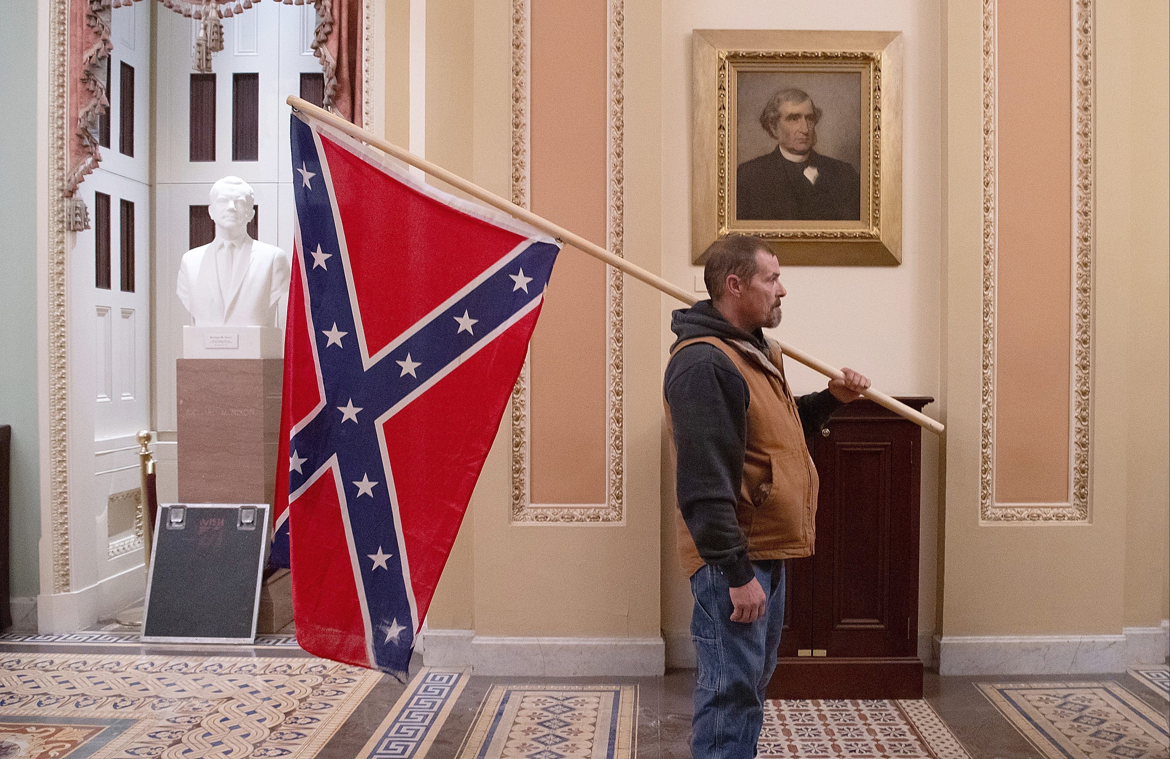 Man Pictured Carrying Confederate Battle Flag In Capitol Riot Is Arrested With Son