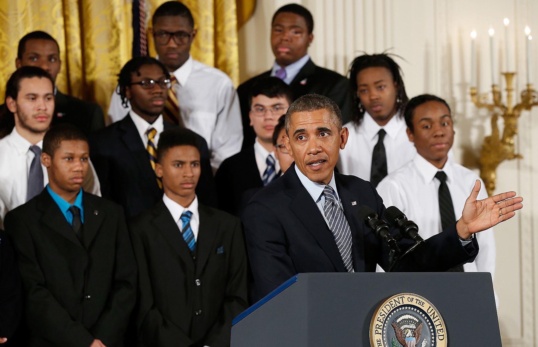 Surrounded by a group of Black and Latino teenagers in the East Room of the White House, the president talked about how the odds for success have unfavorably stacked up for boys and young men of color. Despite examples of extraordinary achievement, such as Gen. Colin Powell, Transportation Secretary Anthony Foxx and the president himself, they are statistically more likely to grow up in homes without fathers, less likely to read at grade level by fourth grade and more likely to end up in the criminal justice system.