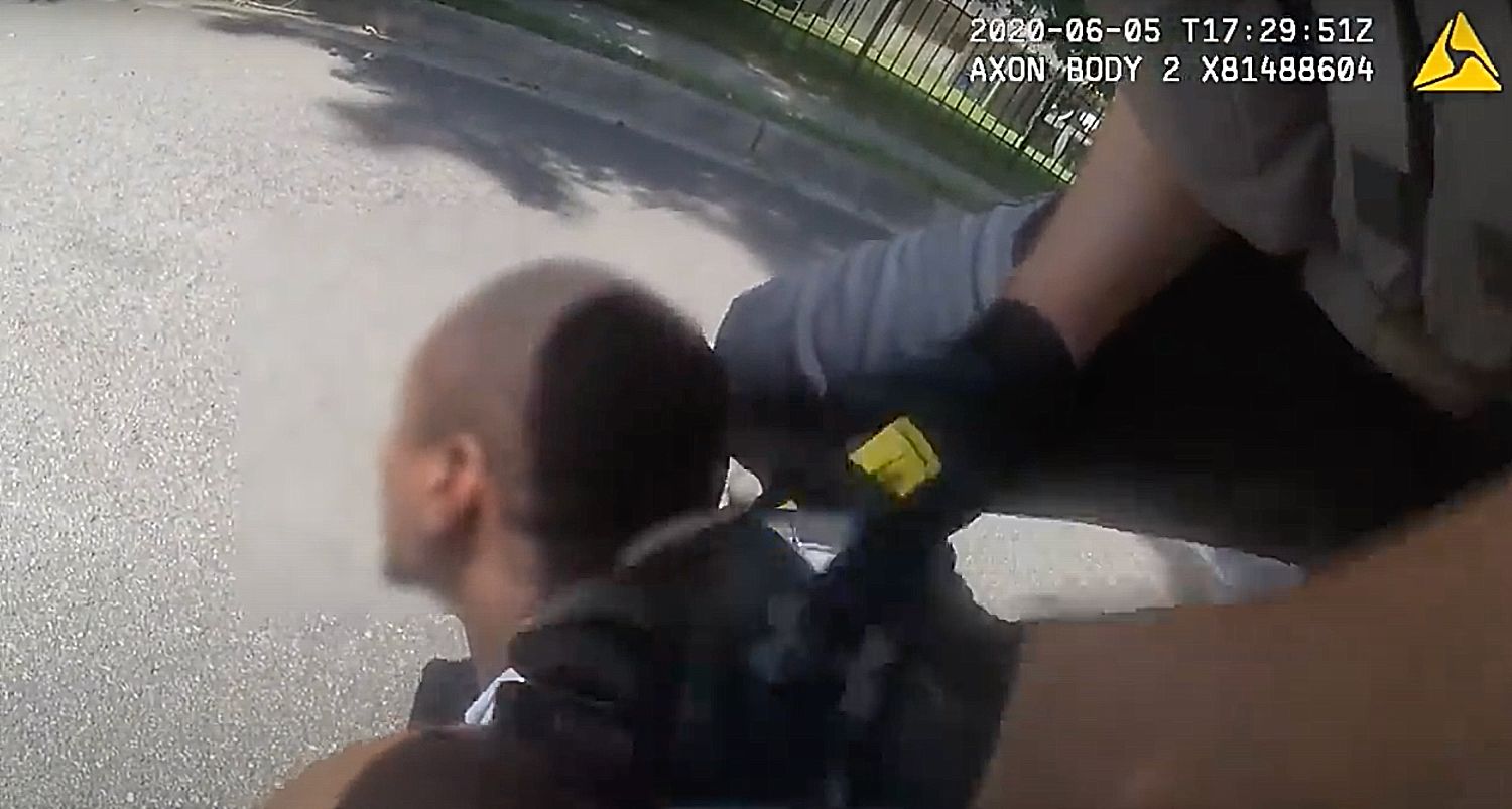 The video first shows the man wandering the streets seemingly unaware of his surroundings. Timberlake can be seen coming out of his patrol car, addressing the man who appears to be incoherent. Then another officer approaches, but upon seeing Timberlake, turns away. Moments later, the video shows Timberlake using his stun gun while the man falls to the ground yelling,”No, no, no.”