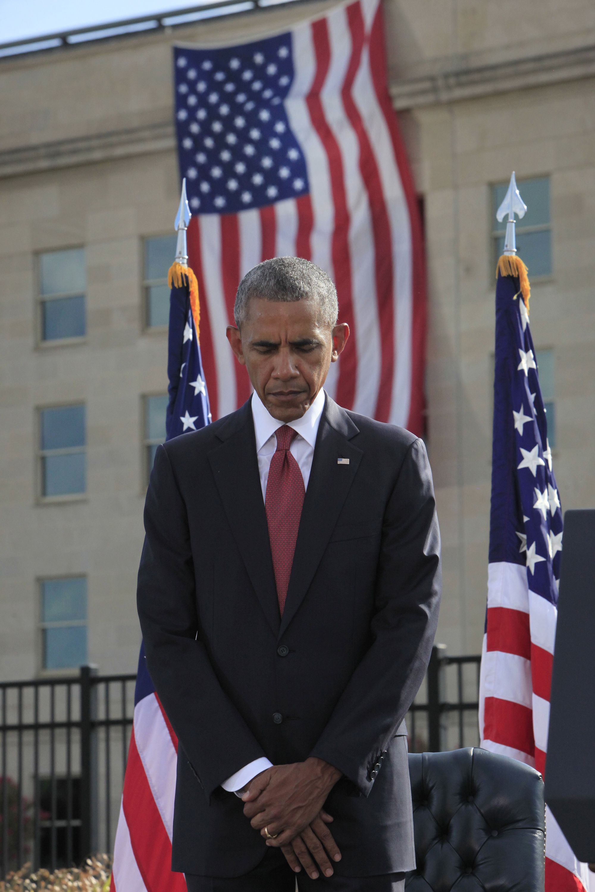 Obama continued to say that terrorist groups like ISIS will "never be able to defeat a nation as strong as America" so they operate to instill fear and separation to change the way Americans live. "We know that our diversity, our patchwork heritage, is not a weakness," the president said. "This is the America that was attacked that September morning. This is the America that we must remain true to."