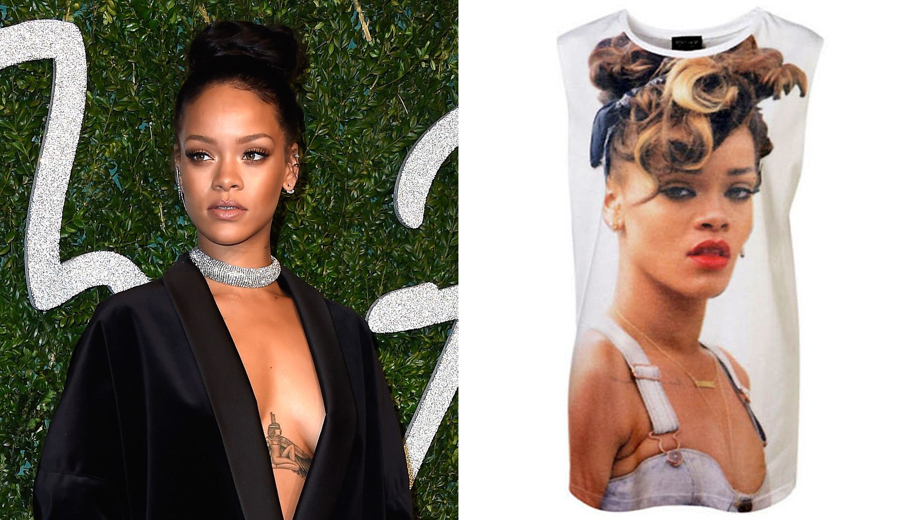 Rihanna has won her lawsuit against Topshop over the brand’s use of her image on a T-shirt without her permission. In 2013, the singer sued Topshop parent company Arcadia for $5 million in damages stemming from the white sleeveless tee baring a photo of her in overalls and an updo taken during a video shoot in 2011 for her Talk That Talk album. The high court ruled in her favor in 2013 and then Topshop lawyers went in for an appeal.