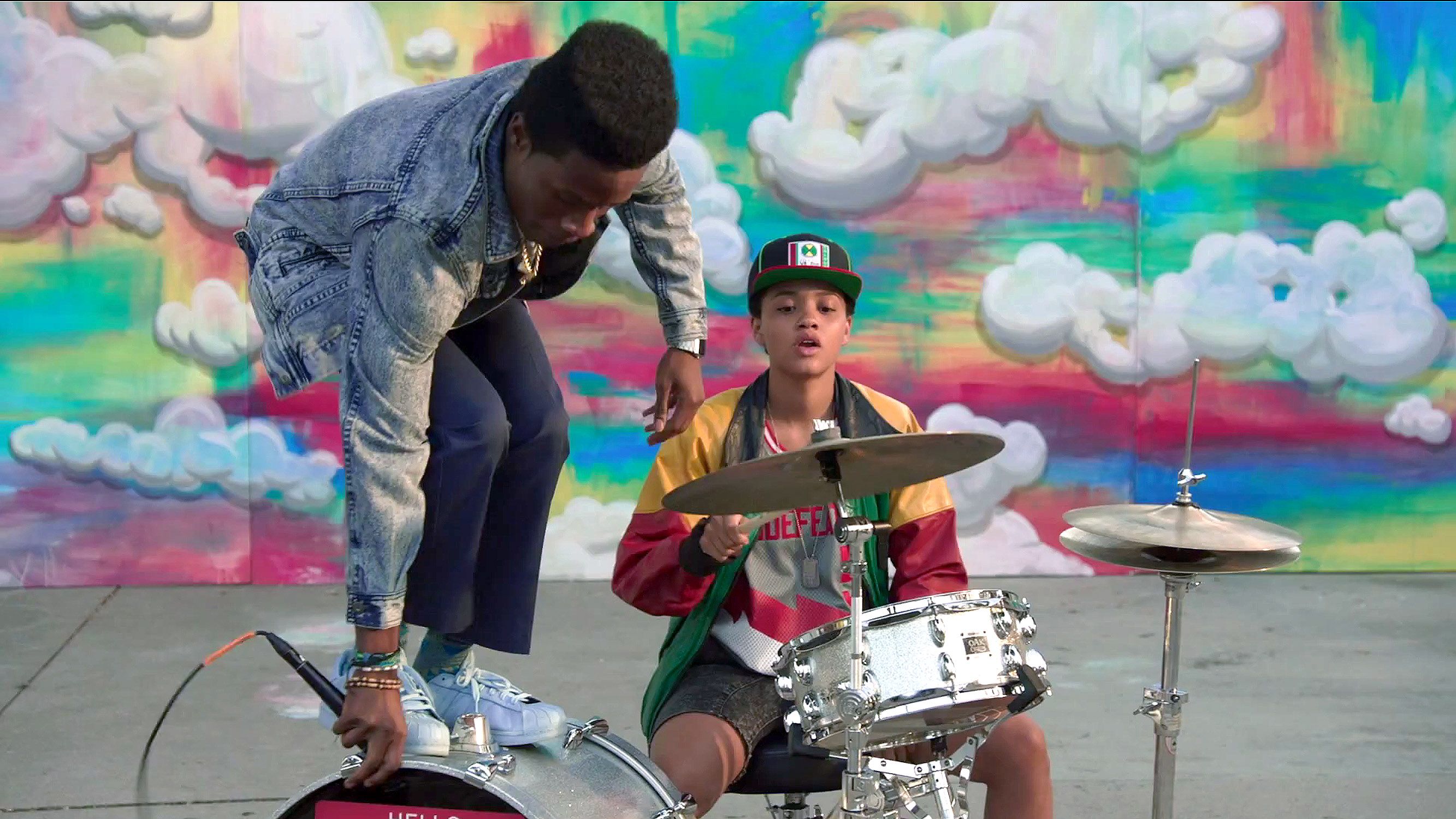 The clip starts off with the trio — consisting of Malcolm (Shameik Moore), Jib (Tony Revolori) and Diggy (Kiersey Clemons) — FaceTiming their buddy Will (Blake Anderson), trying to save their failing outside gig. He turns around in the frame to show him that the outside venue is a ghosttown, but Will, who's apparently a tech wiz, had a plan: shut down all of social media, forcing everyone to go see them perform. What ensures afterwards, you have to watch the clip to find out.