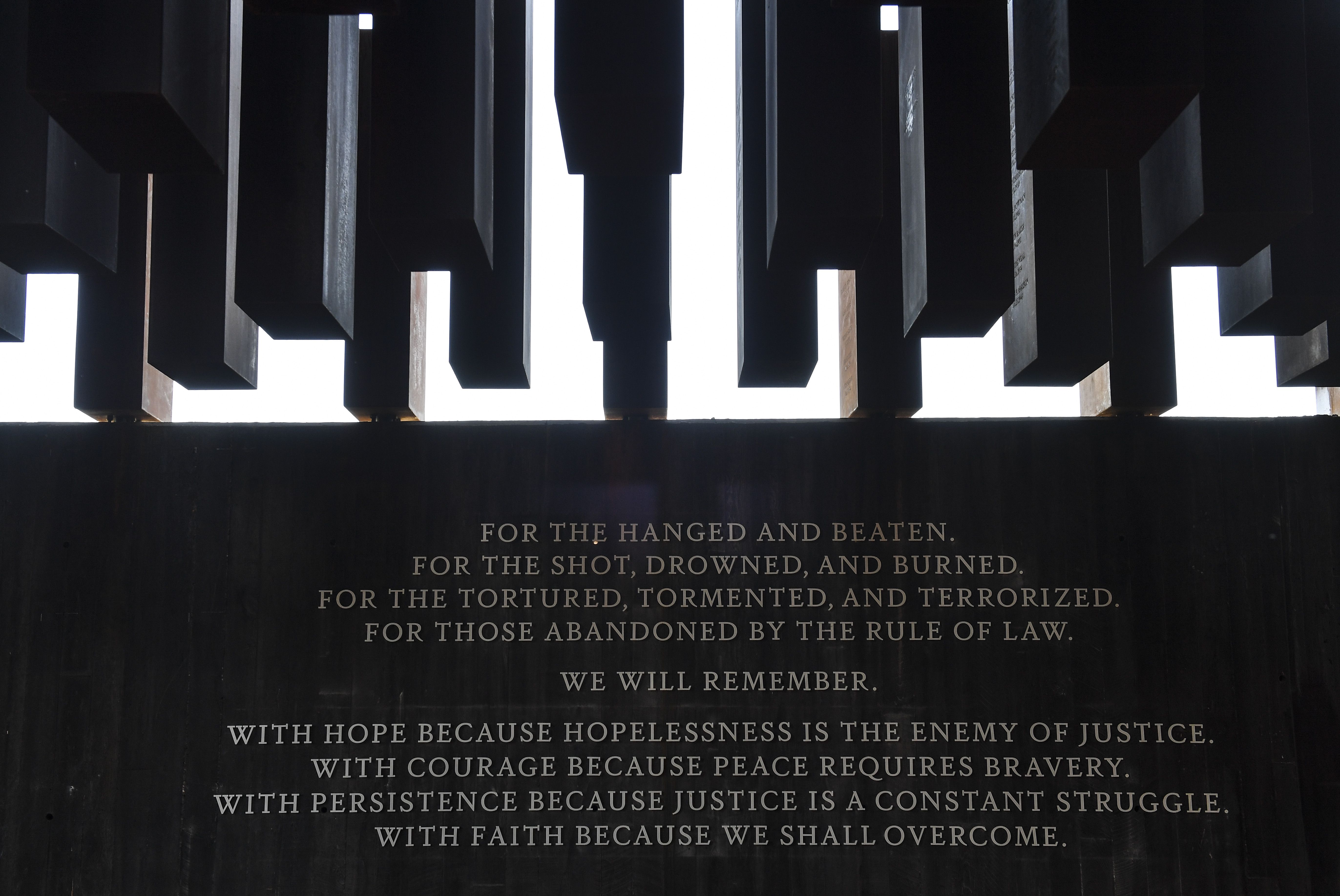 Powerful images from the memorial show 800 hanging steel columns, all containing the name and location of people who were lynched. The columns hang in remembrance of the people, many of whom were unidentified, who were found hanging in trees.