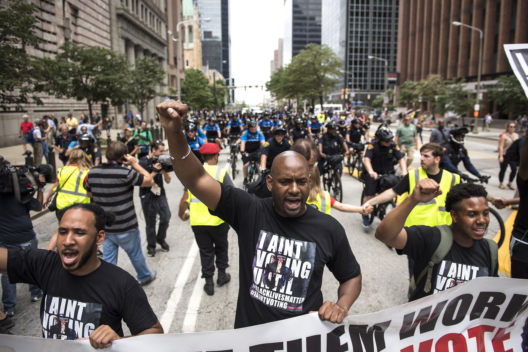 “We want to be respected,” Cannon told the crowd. “We want to feel safe. We want the American Dream. You are messing with our peace of mind. We can’t operate as Americans when we can’t walk outside and feel safe. We are going to be out here for the entire convention and make sure our voices are heard.”