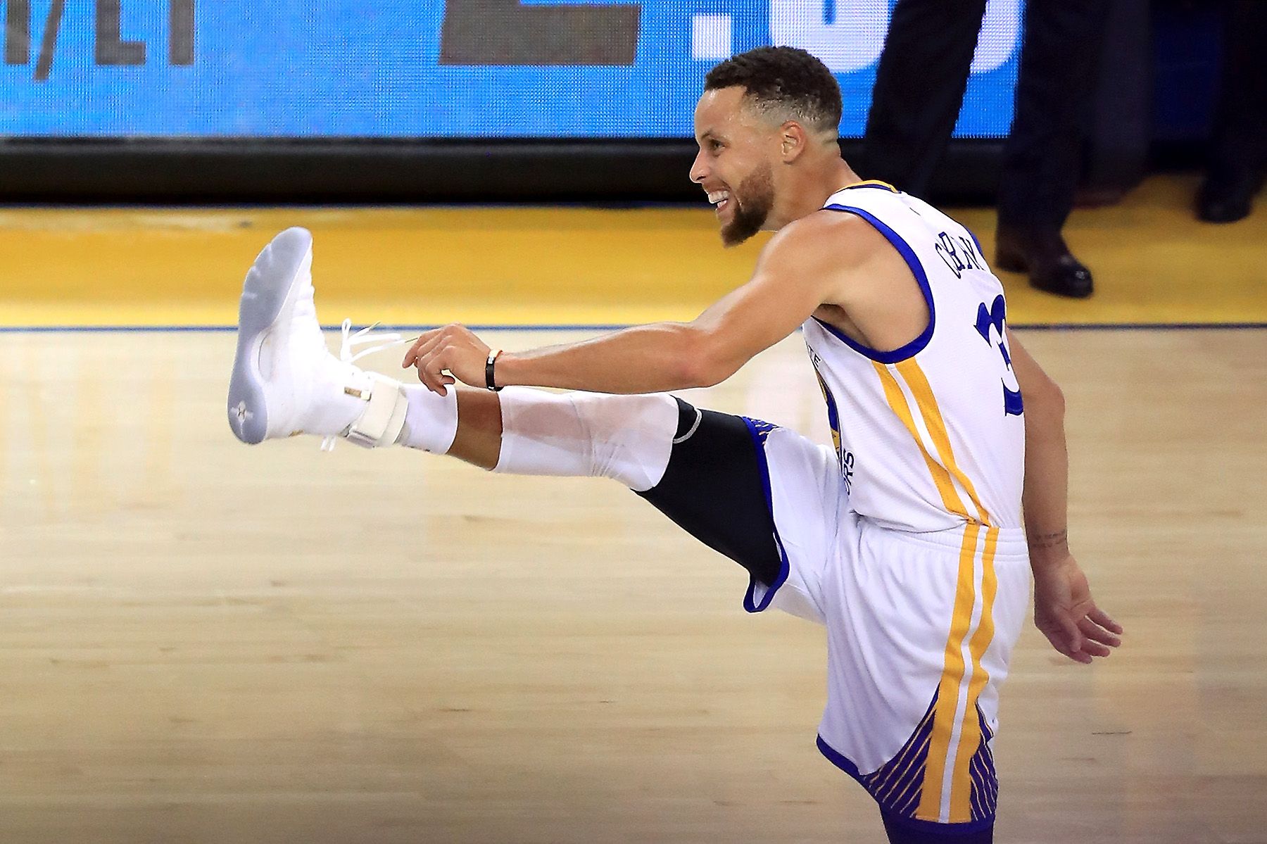 There was a moment during Game 1 of the NBA Finals last night when Steph Curry drained a 3-pointer over J.R. Smith and proceeded to do back-to-back high kicks.