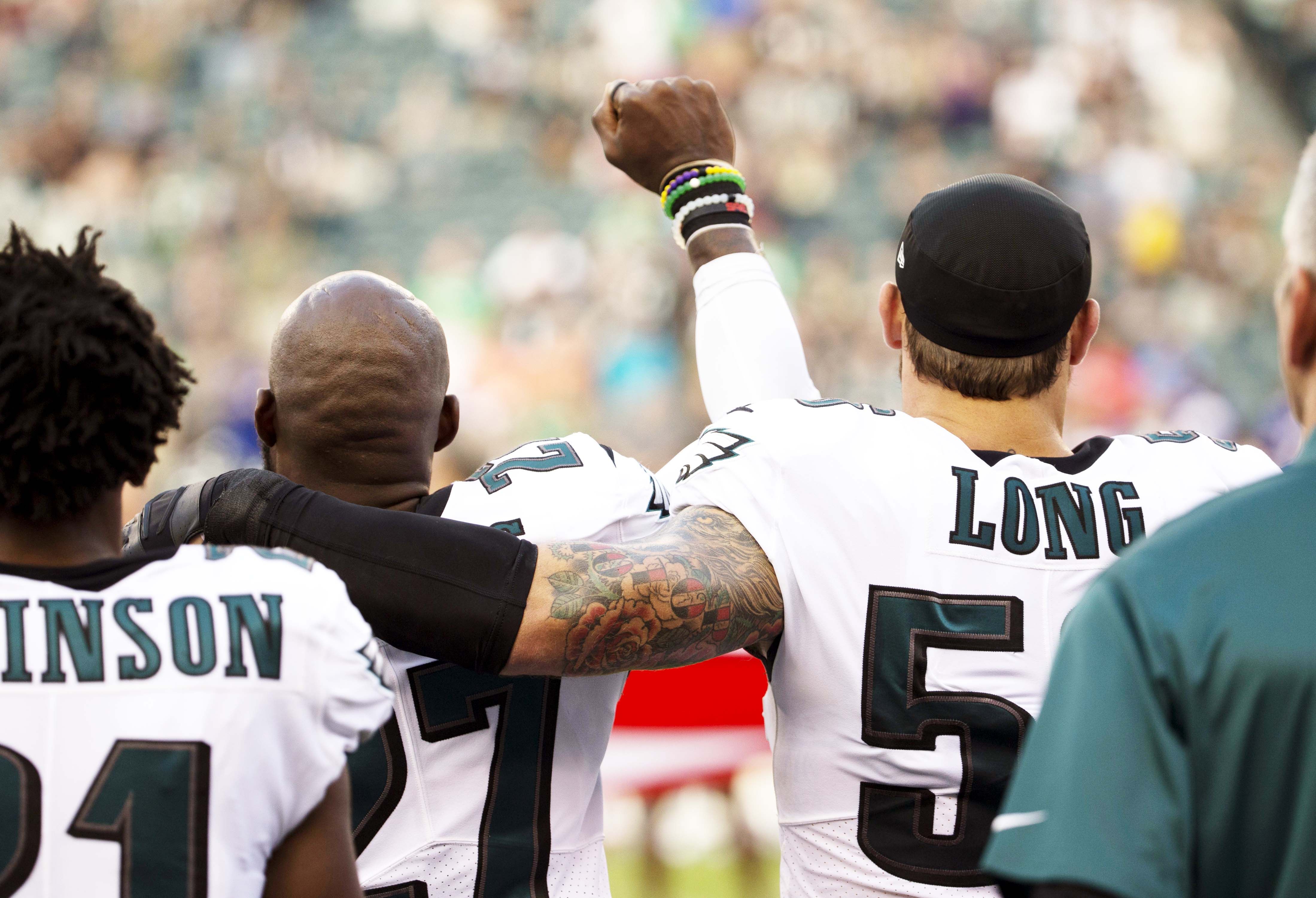 He added: "Chris Long put his arm around Malcolm Jenkins, as Malcolm Jenkins raised his fist, and said, 'I'm rallying for my brother."