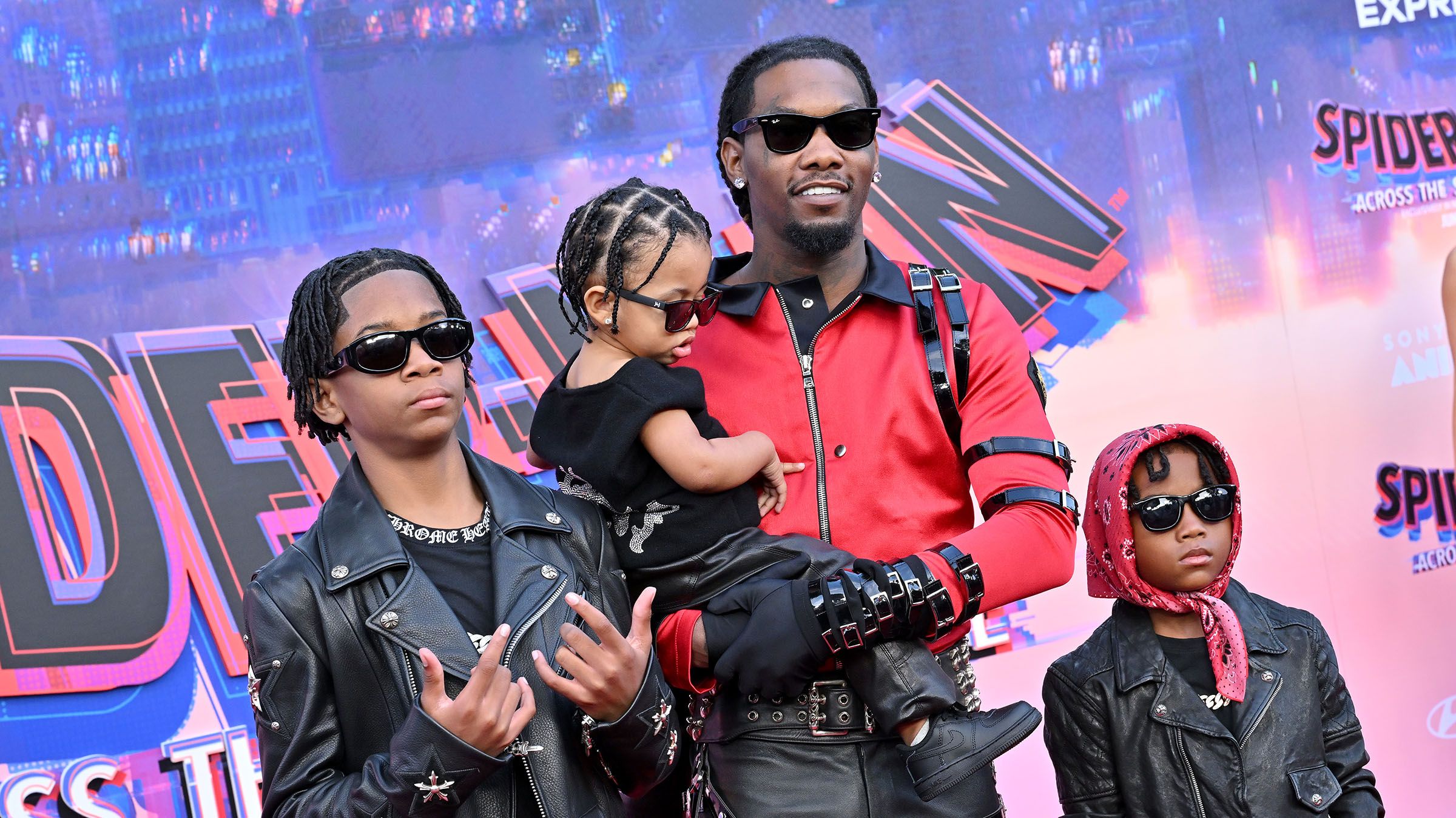 Offset is a pretty rad dad. Last month, he and his daughters, Kulture, 5, and Kalea, 8, attended the red carpet premiere of Disney's The Little Mermaid in complementing royally-inspired ensembles. This time, he took his three sons to see Spiderman: Across the Spiderverse, and they all looked red-carpet-ready.