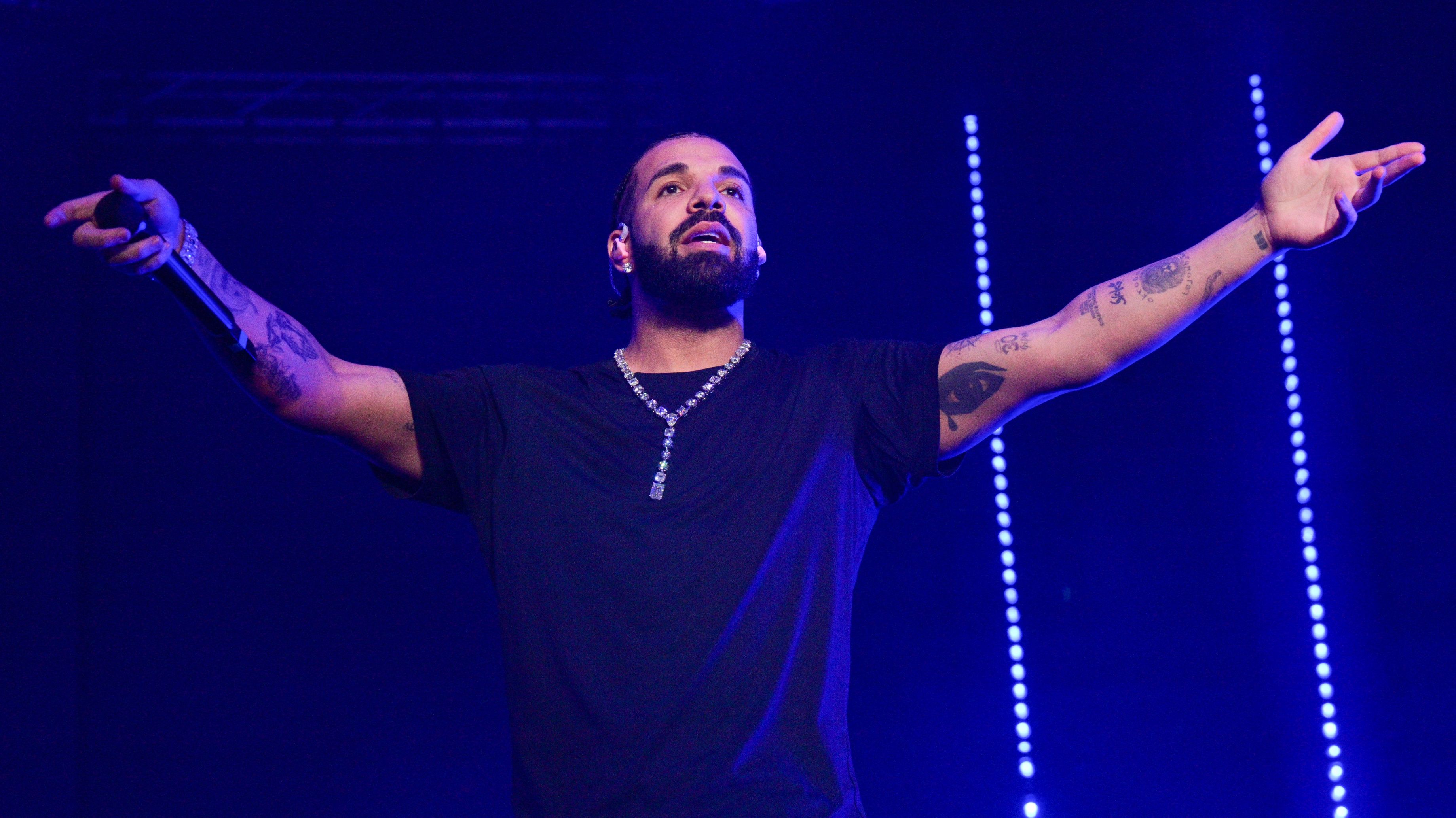 ATLANTA, GA - DECEMBER 9: Rapper Drake performs onstage during "Lil Baby & Friends Birthday Celebration Concert" at State Farm Arena on December 9, 2022 in Atlanta, Georgia. (Photo by Prince Williams/Wireimage)