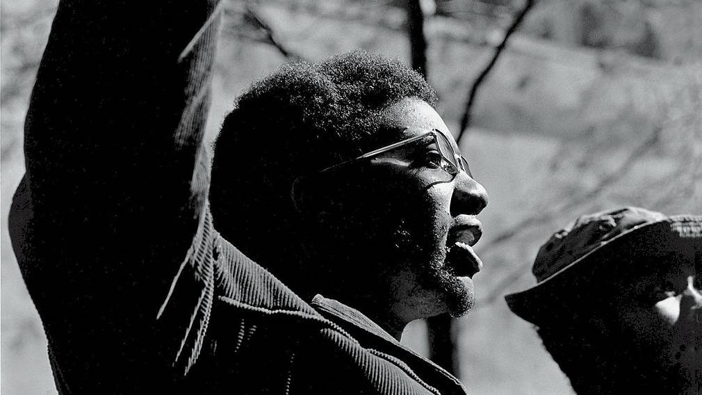 American political & social activist and Black Panther Party member Fred Hampton (1948 - 1969) raises his arms at the 'Days of Rage' rally, Chicago, Illinois, October 11, 1969. (Photo by David Fenton/Getty Images)
