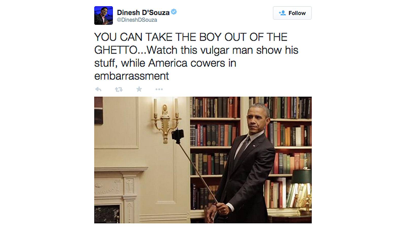 Dinesh D'Souza Lashes Out at Obama in Racially Charged Tweet