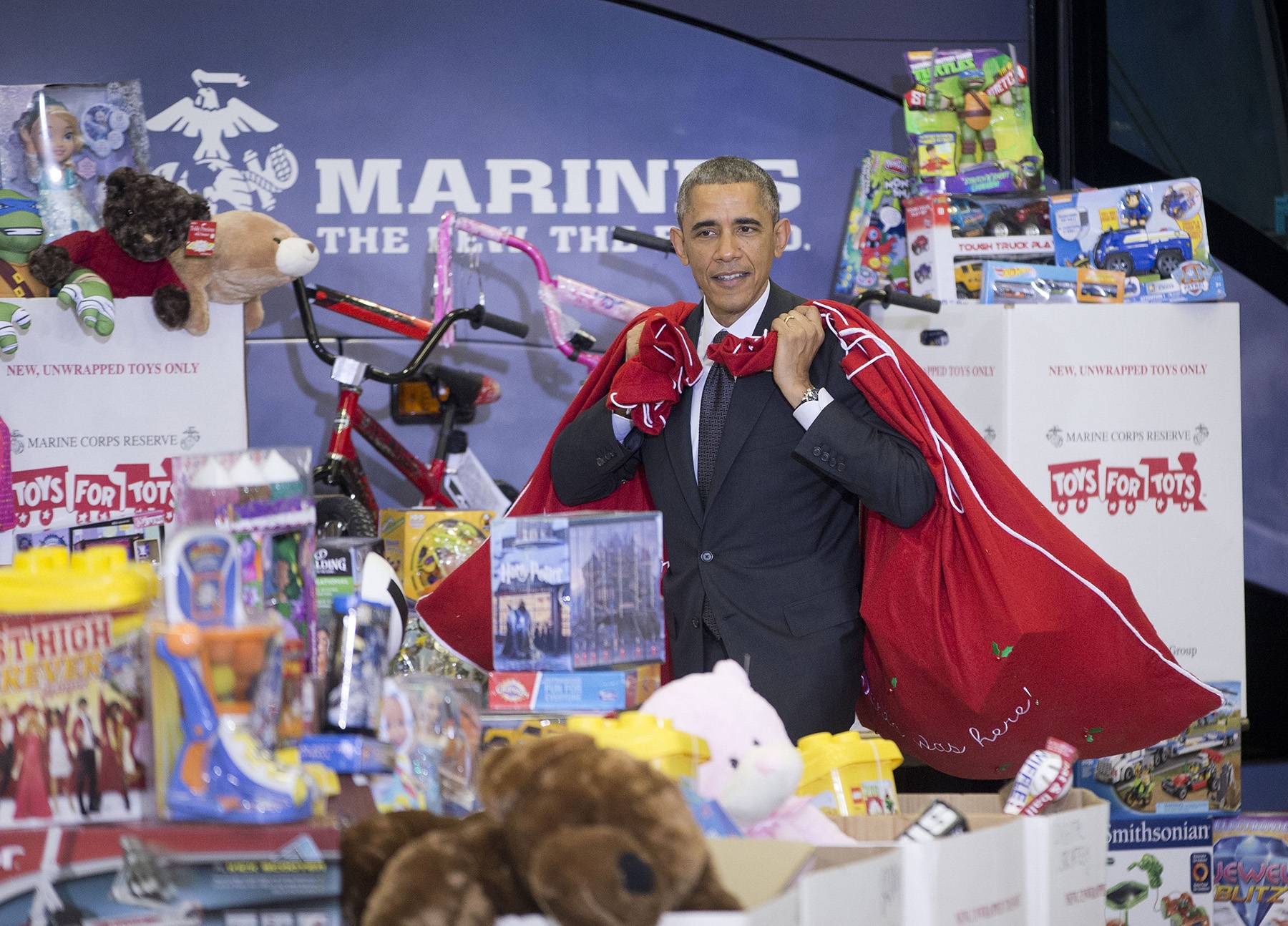 Obama Helps Deliver Toys to Marine Corps Drive